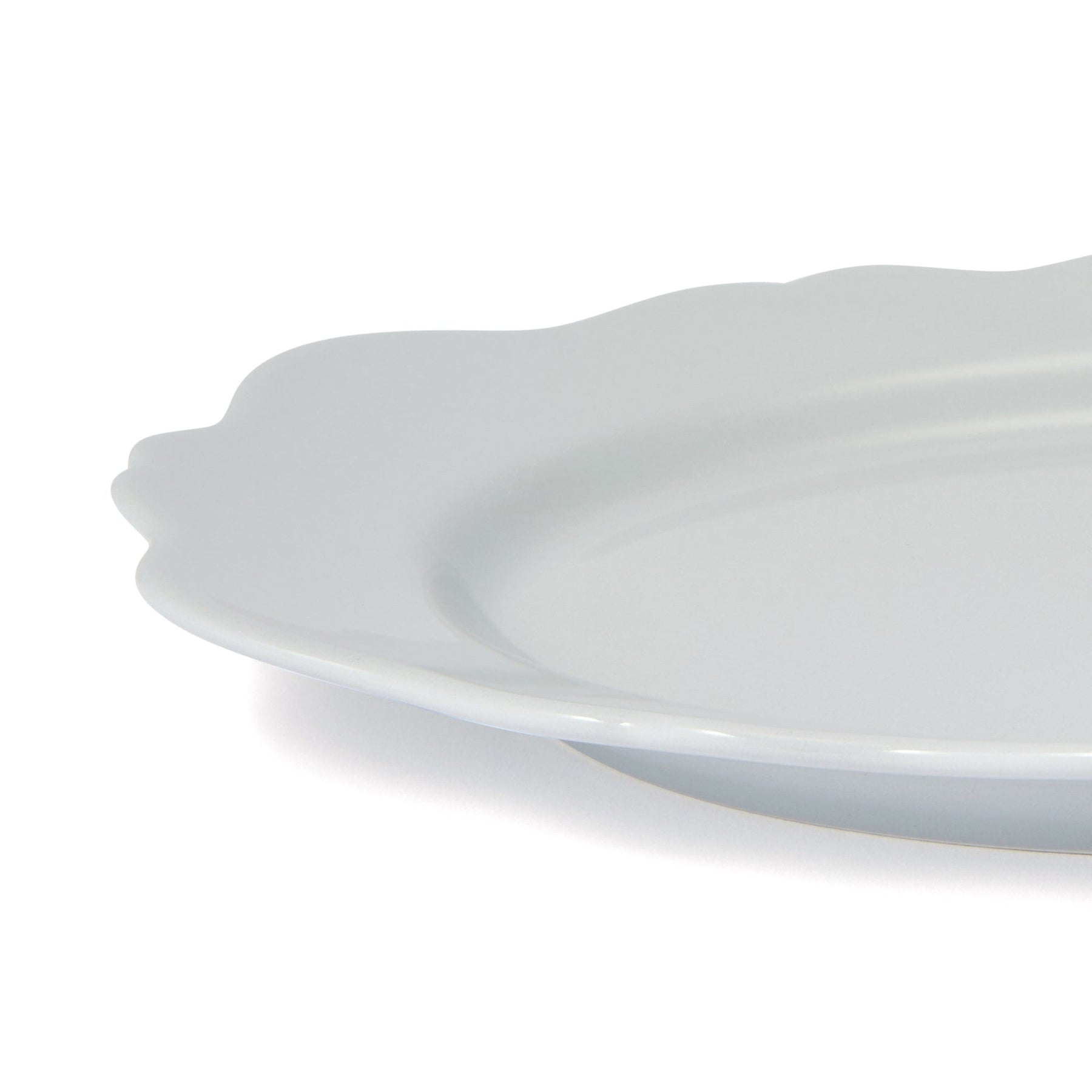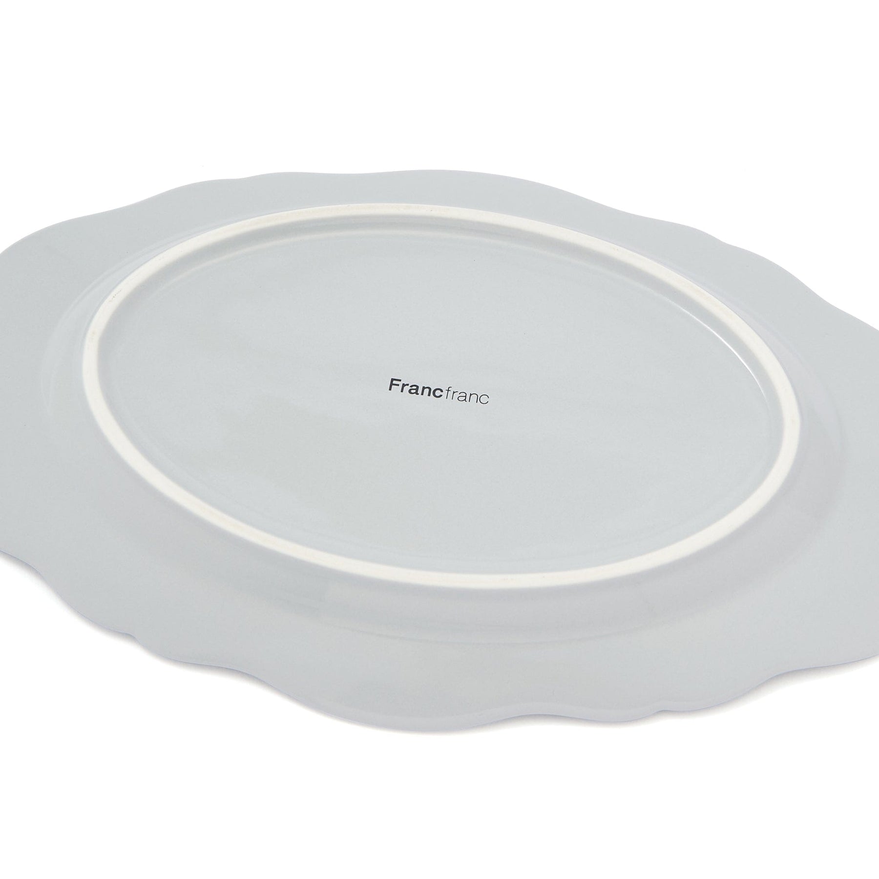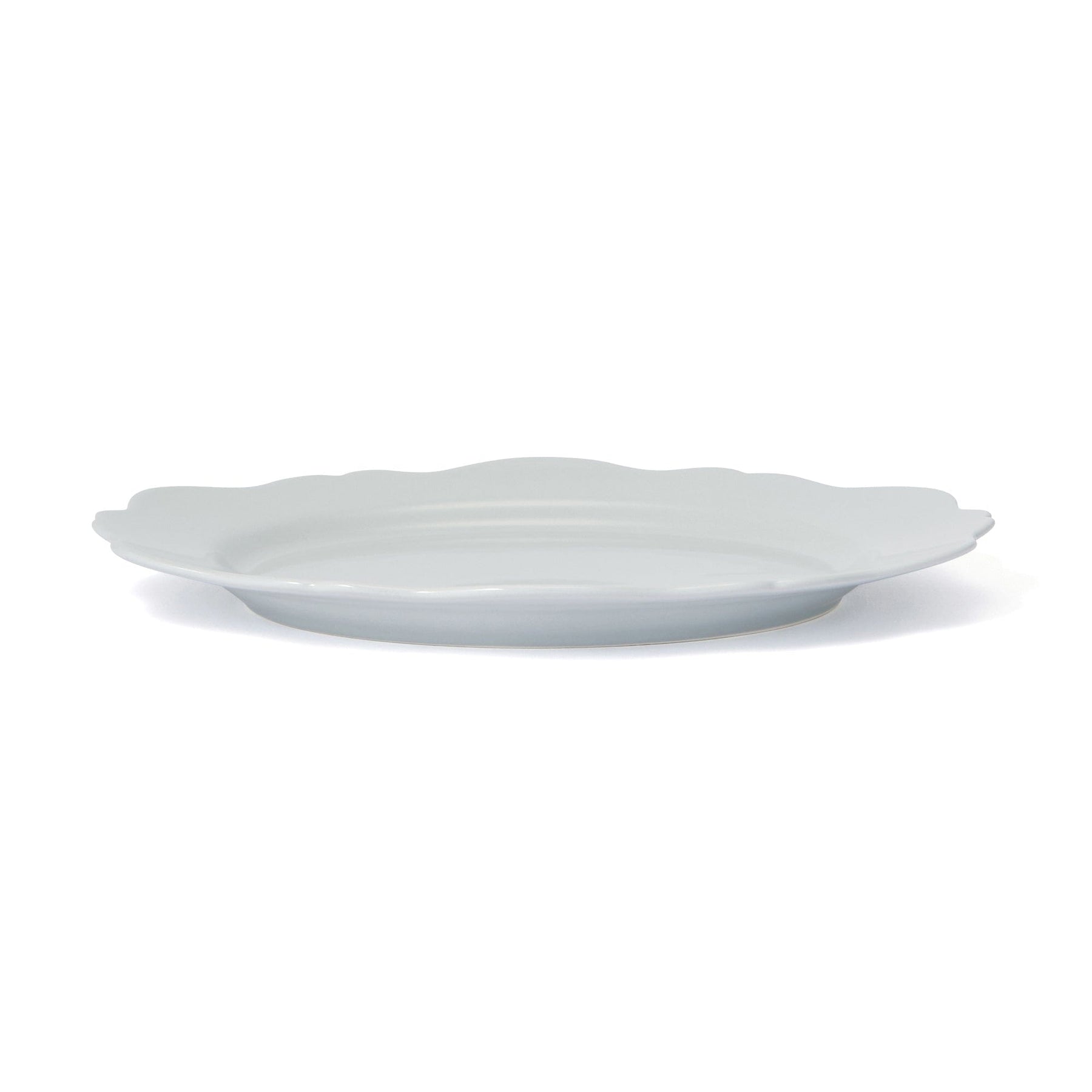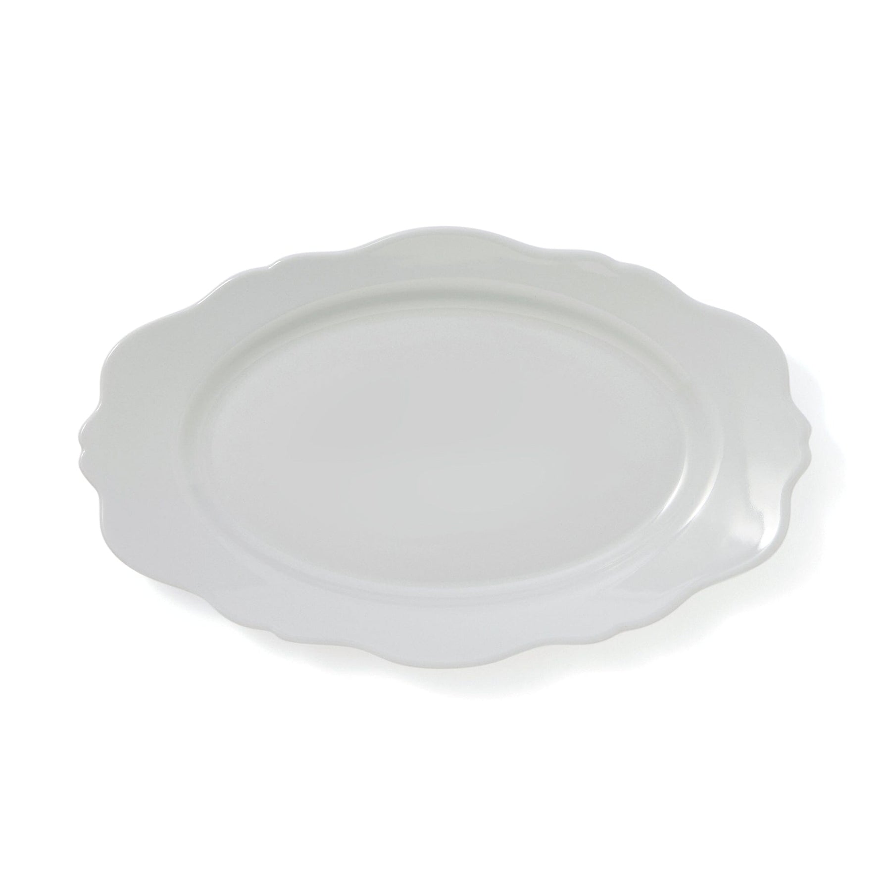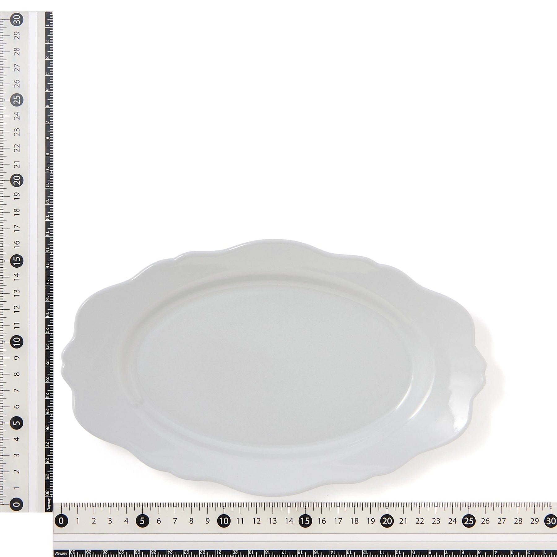 This elegant oval plate features a soft, scalloped shape that catches the eye.The gently wavy edges subtly enhance the food and add a gentle touch to your dining table.
