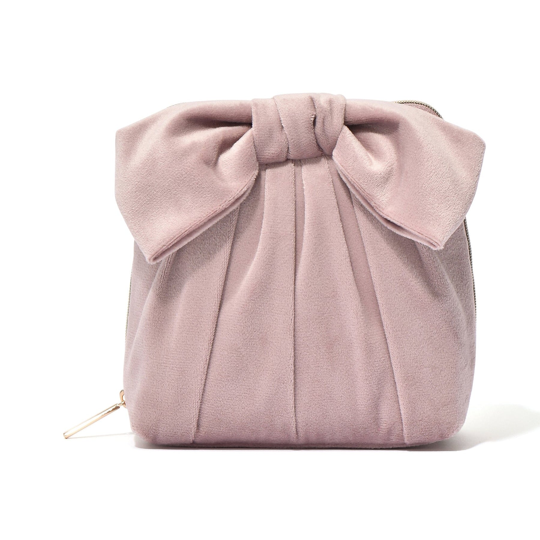 This pouch is made of shiny velour fabric and features a large ribbon.The cute ribbon motif and subdued color scheme are perfectly balanced, making it an easy design to incorporate into everyday use.