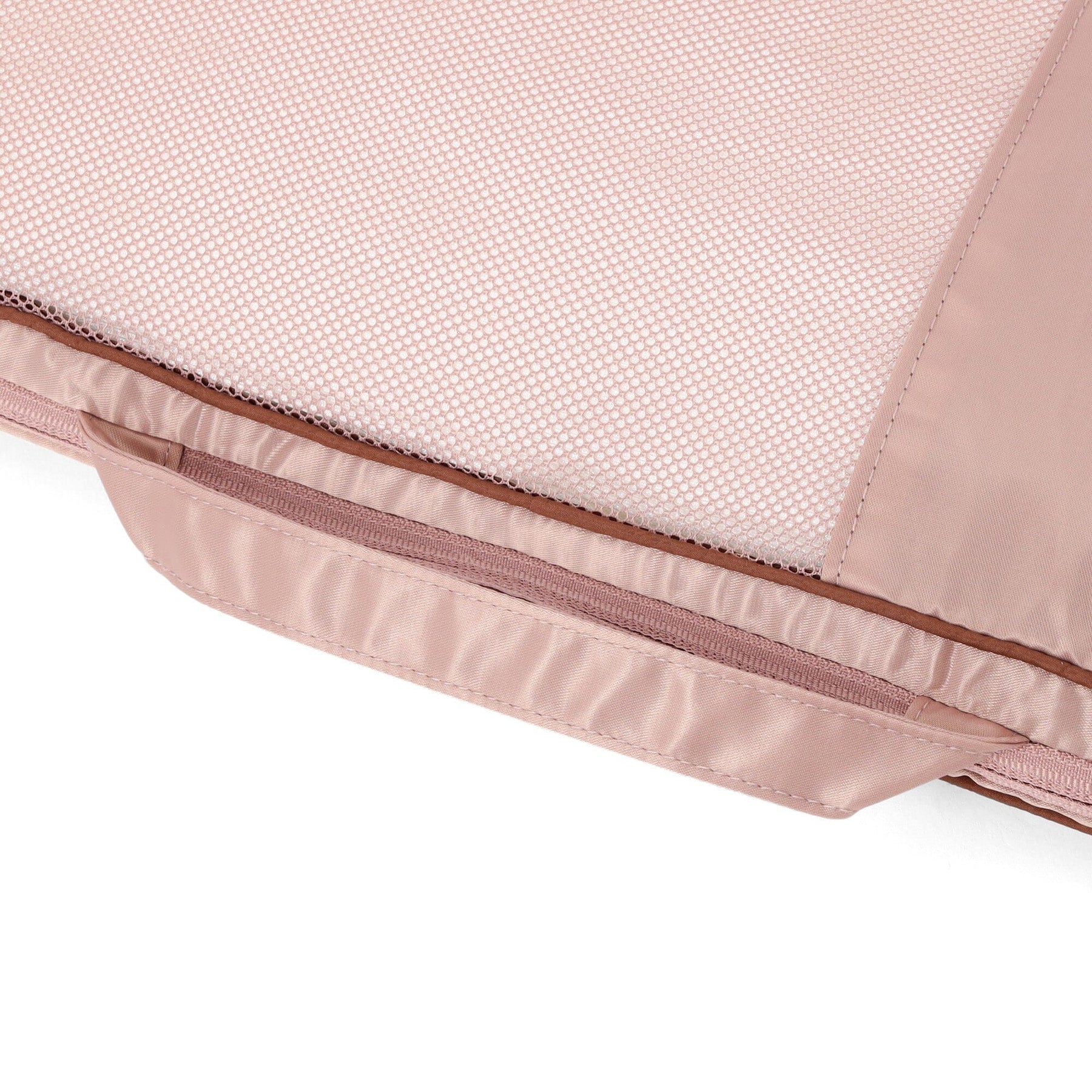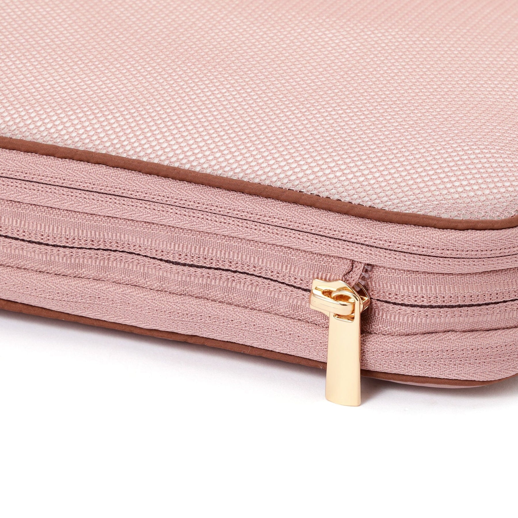 Simply close the zipper on the outside of the organizer one and a half times to compress the clothes inside.