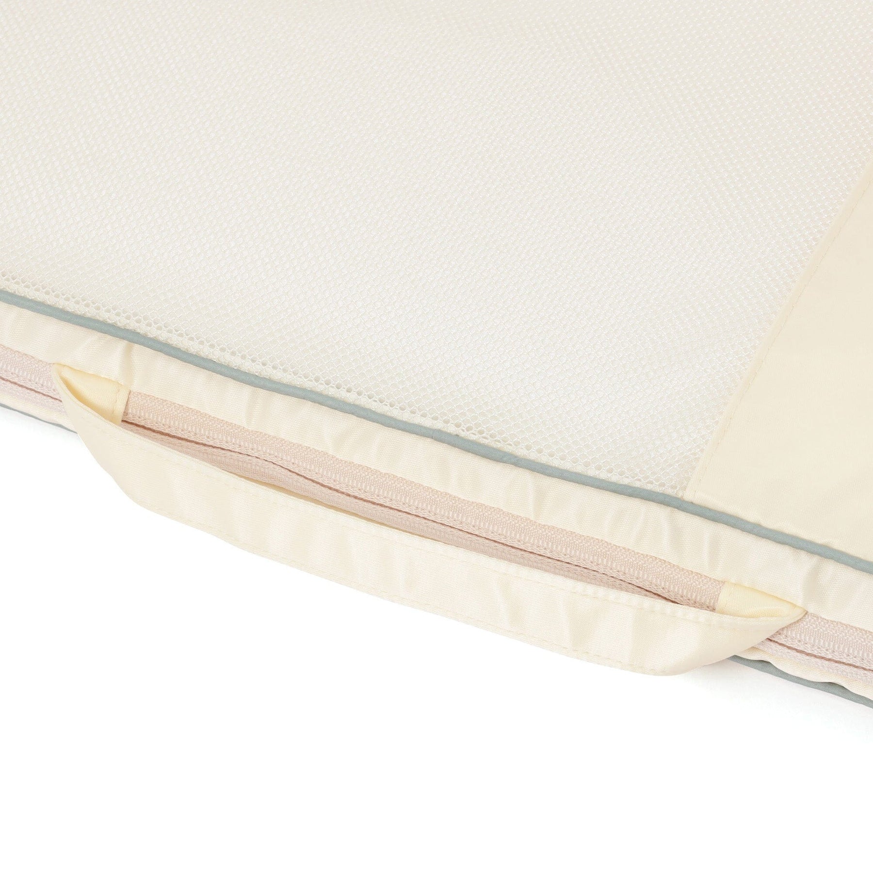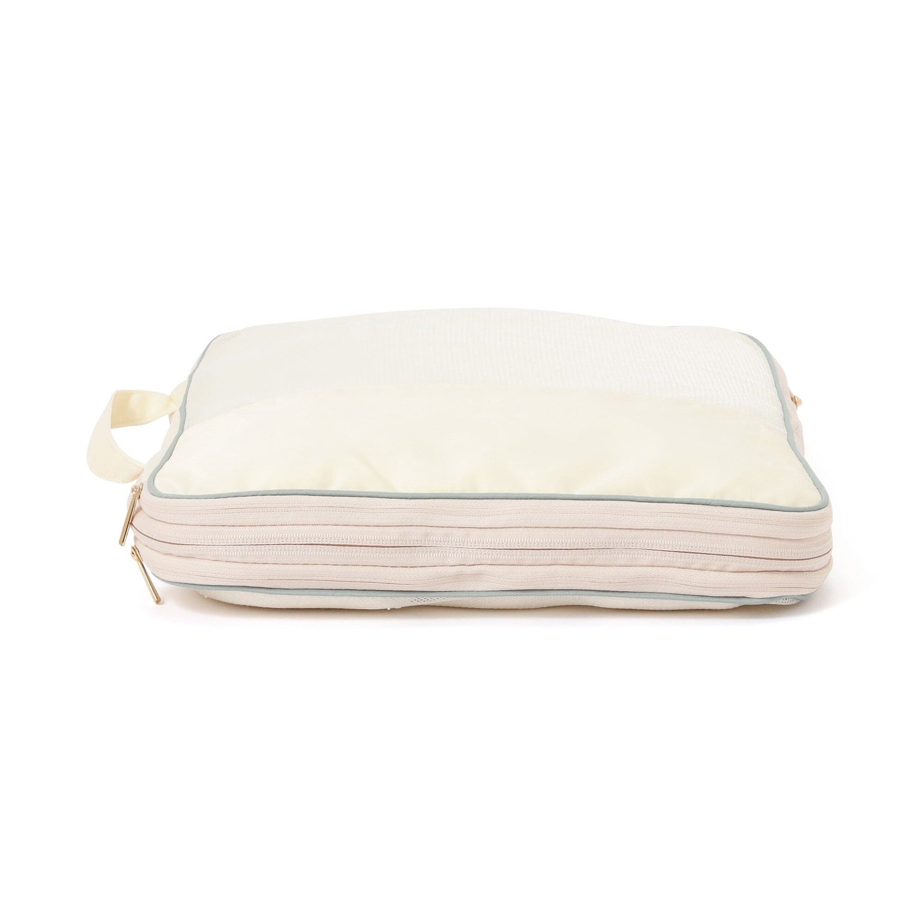 Simply close the zipper on the outside of the organizer one and a half times to compress the clothes inside.
