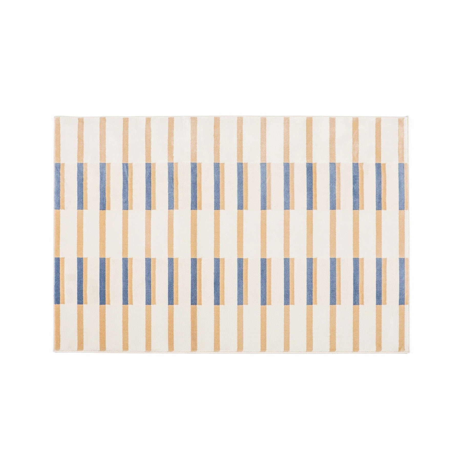 This rug features a geometric pattern in a sophisticated color scheme. The rhythmic stripes create a sense of light movement in the space. It uses the traditional Wilton weave technique. It's durable, breathable, and machine-woven, yet boasts the delicate, dense finish of a handwoven rug. Its short, smooth pile makes it easy to care for and ideal as a dining rug. It's comfortable all year round. It's also compatible with heated carpets and underfloor heating. The name "Mitte" (meaning "center"), German for "comfort," reflects the geometric pattern and warm color scheme that bring comfort to the center of everyday life. [About Welton Weave] This traditional weaving technique originated in the Wilton region of England and is now used for luxury rugs. The loom creates a dense, three-dimensional pile, allowing for the beautiful expression of intricate patterns and rich colors. It is highly durable and of such high quality that it is used in hotels and public spaces.Specifications