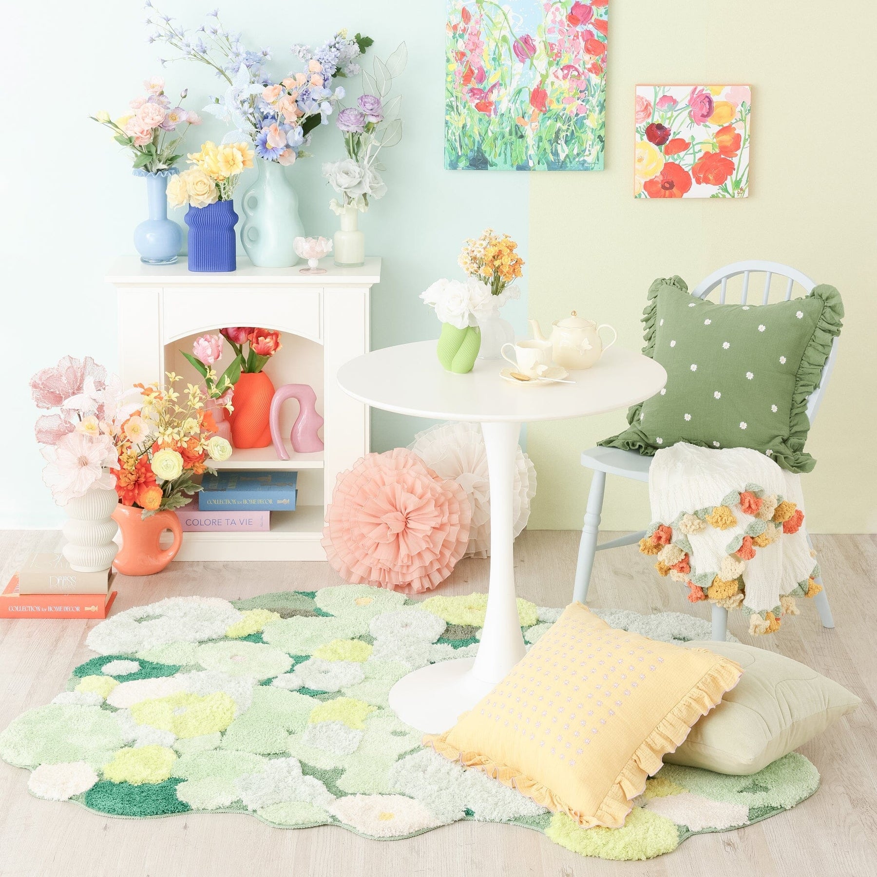 This rug is inspired by the small flowers and grasses blooming in a field.Its spring-like design is reminiscent of a flower field.