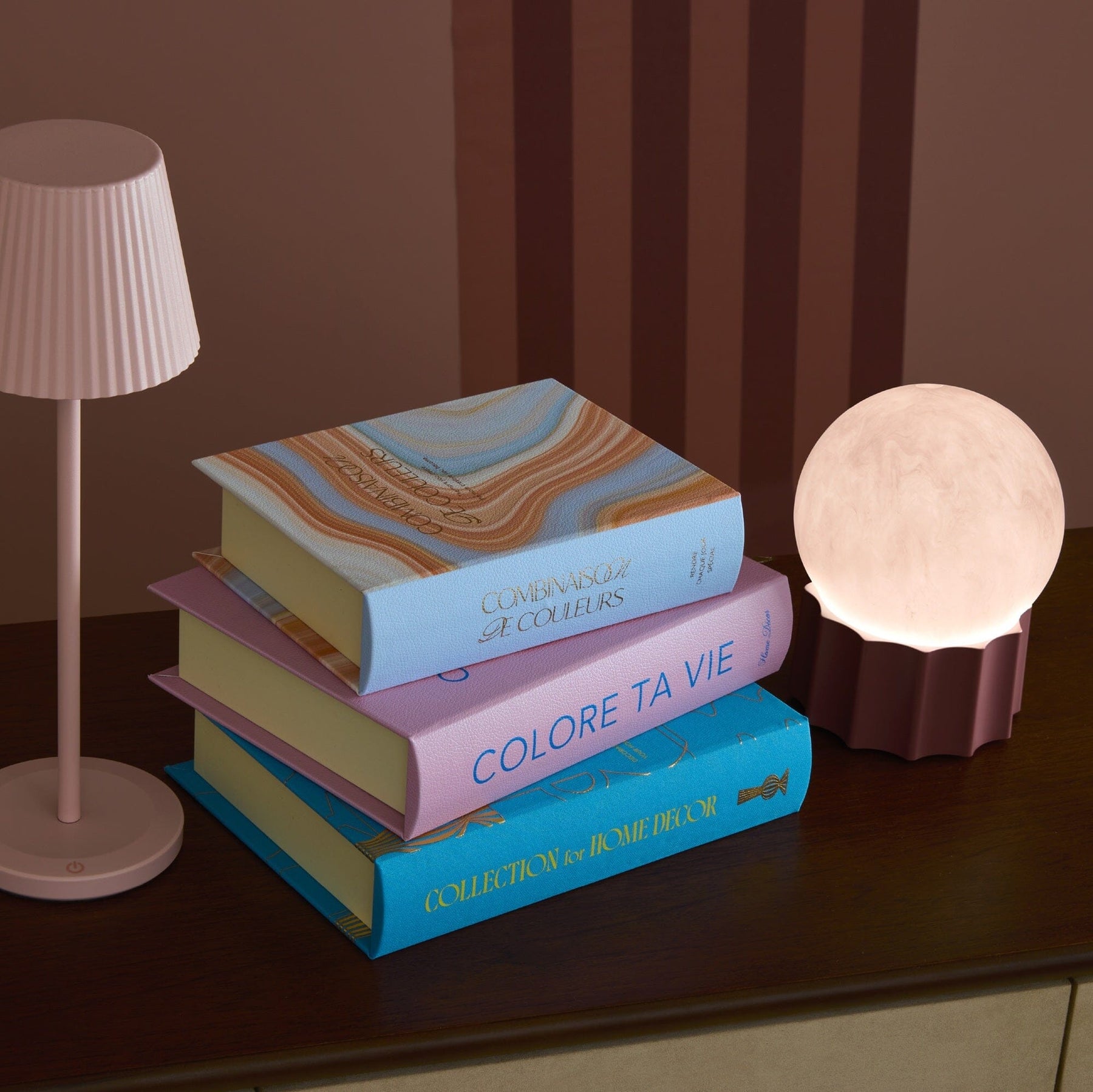 You can line up or stack different colors and sizes from the same series to create a fun piece of interior decor.