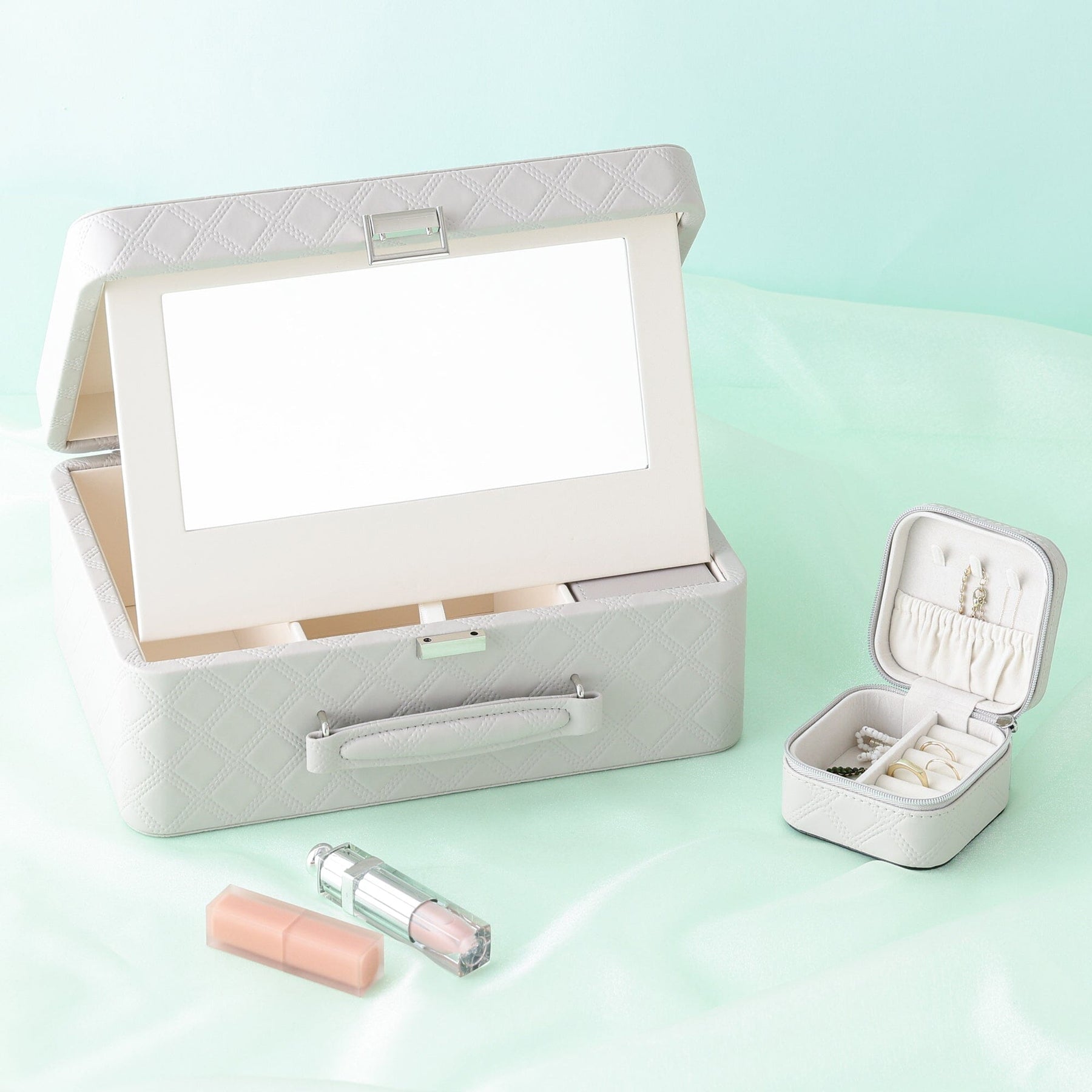 This is a portable jewelry box.Its compact appearance is complemented by its impressive storage capacity.
