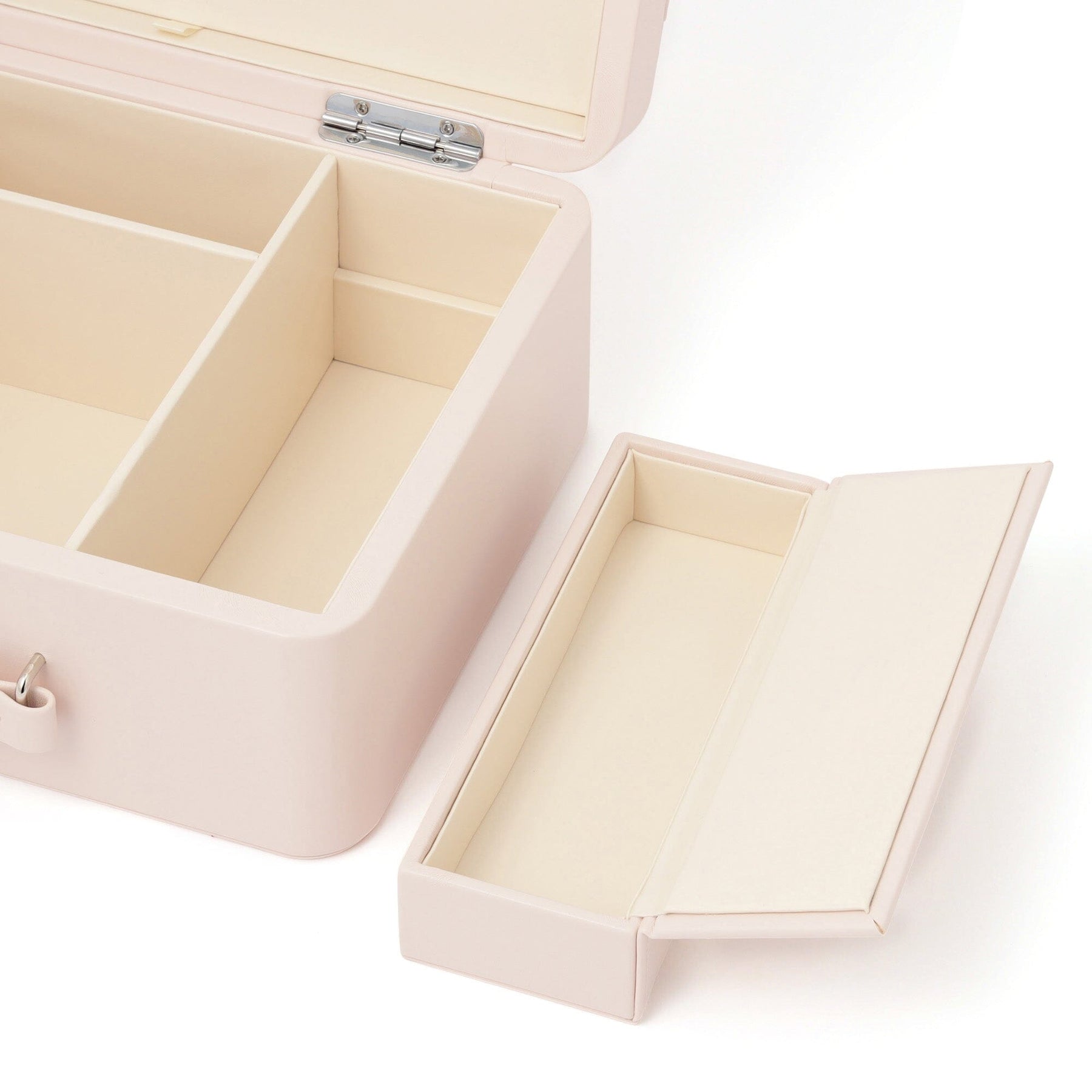 This cosmetic box is both cute and easy to use.When opened, it becomes the dresser of your dreams, and when closed, it transforms into a bag with a handle for easy portability.