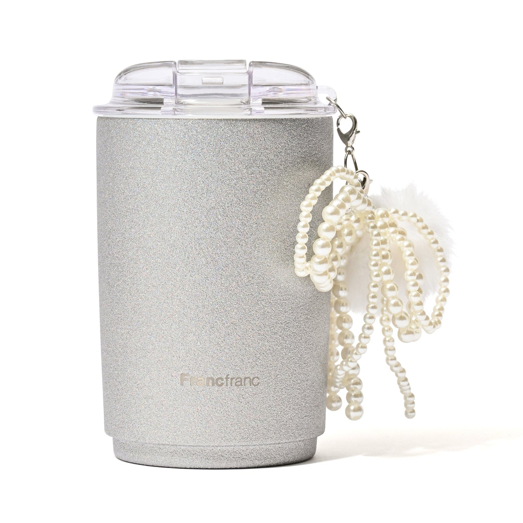 Stainless Steel Tumbler With Charm Glitter Silver