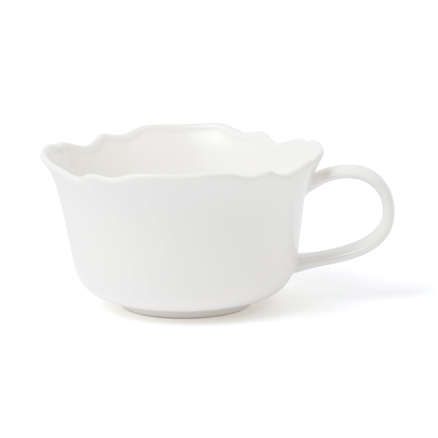 This gorgeous soup cup features a flower-like shape and a plump, voluminous rim.