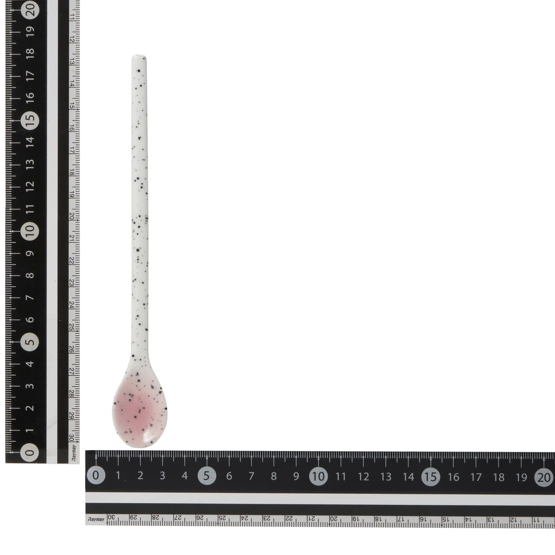 A parfait spoon that goes well with the ceramic parfait tumbler.The splatter pattern gives the impression of vanilla ice cream drizzled in parfait sauce.