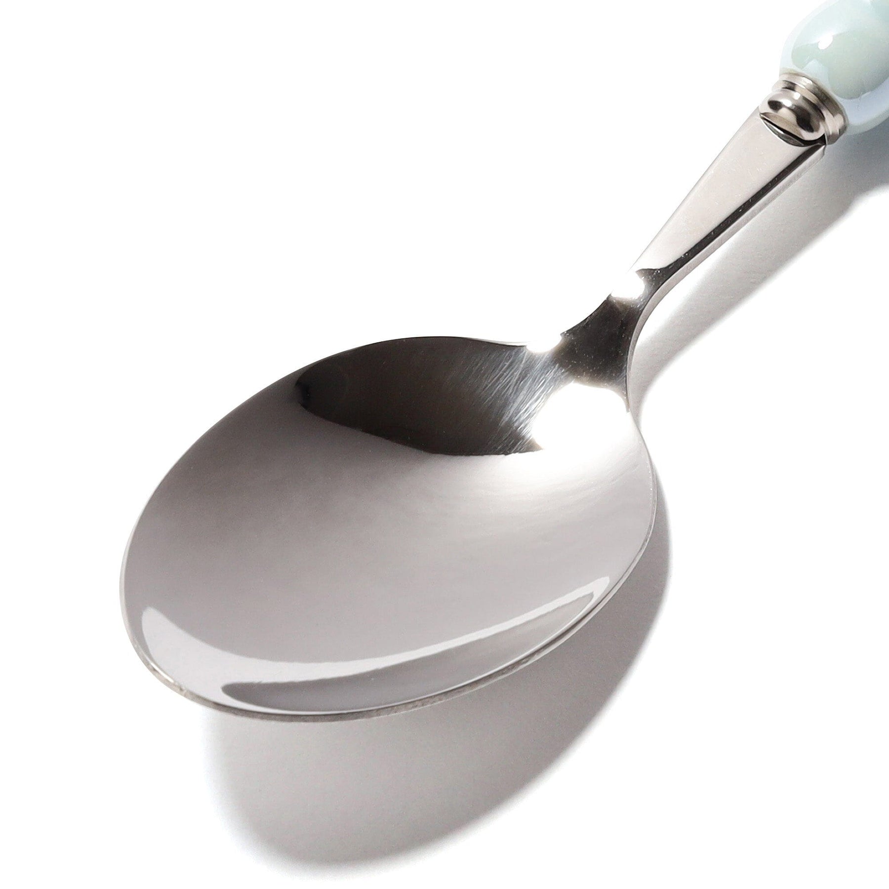 This dinner spoon features a unique handle design that adds a touch of elegance to your table setting.